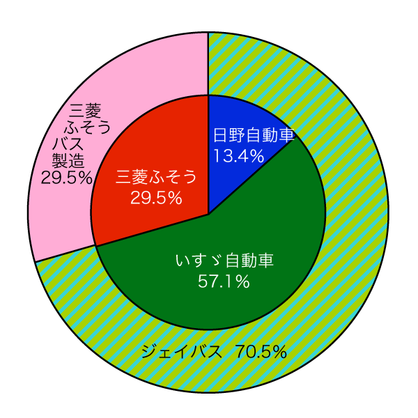日野自動車は日野車体工業系列で,三菱ふそうは三菱ふそう系列で,それぞれ直系のコーチビルダーで全車両架装していました.