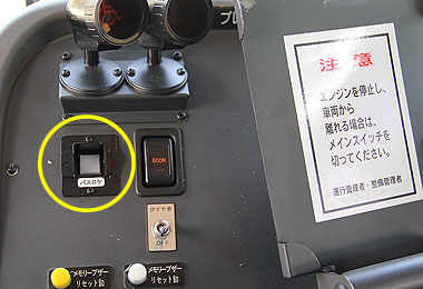 唯一,中乗り式の基幹2系統専用車のみ,前扉〜中扉の中間に設置されています.