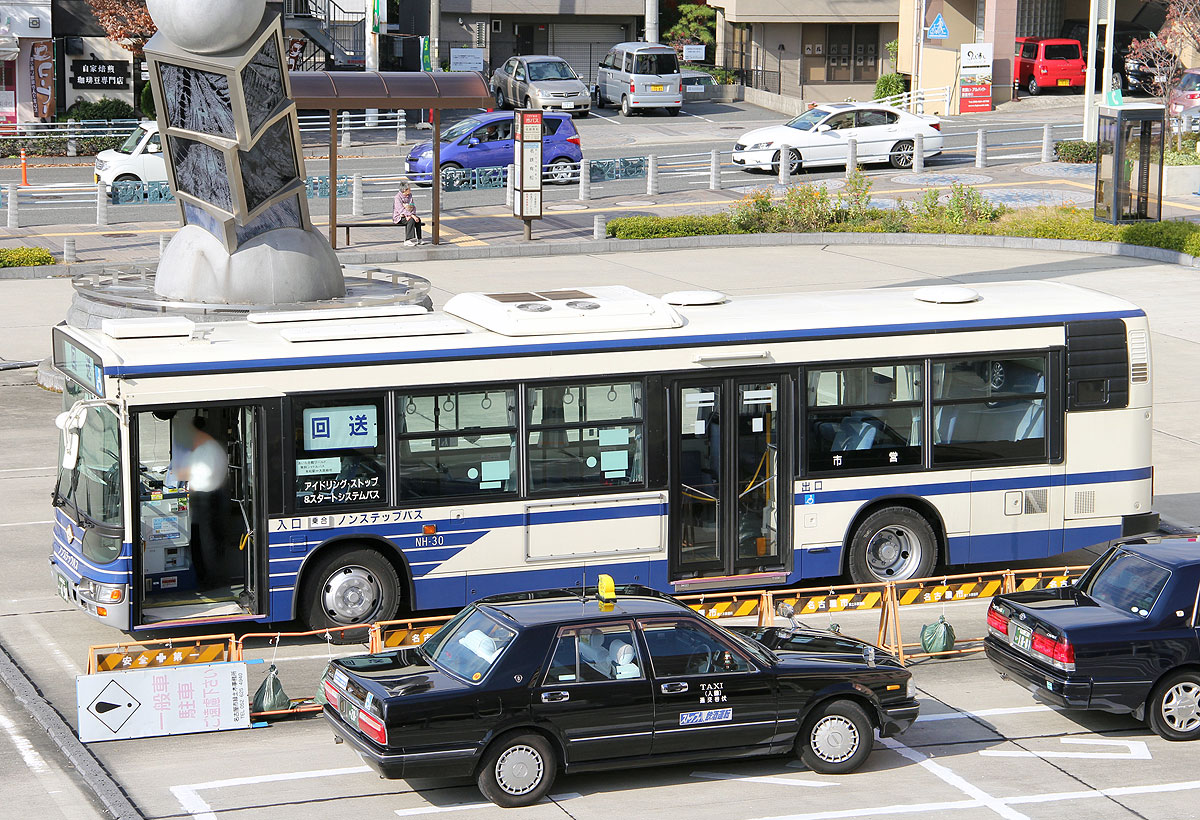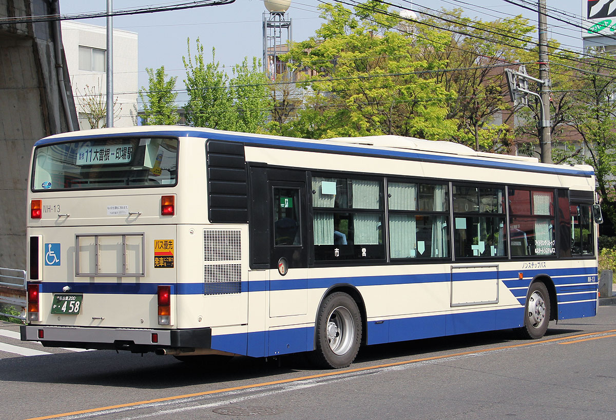 平成13年2月には24両の日野ノンステップ車が導入されています. 局番はNH7〜NH30で,主に日野車を常用する営業所など6カ所に分散配置されました. なお,同時に基幹1系統専用車両として同型車両が4両導入されています.