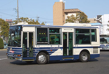 ふそう小型路線バス「エアロミディ・ノンステップ」で,全長7mの小さな車体から,「チョロQ」の愛称で呼ばれています.