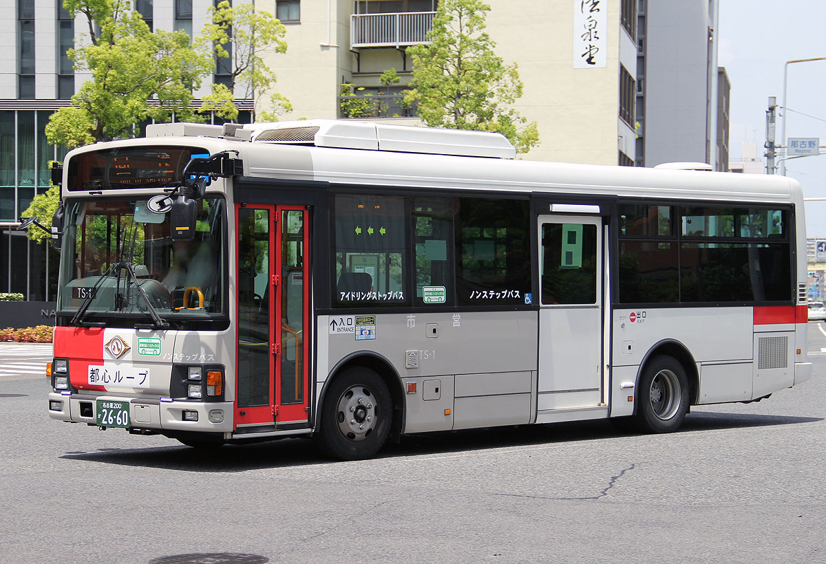 平成10年式のループ系統専用小型車を置き換える目的で導入された中型ノンステップ車両で,8両が購入されました.局番はTS1〜TS8です.同時に一般系統用車両[NMS]も66両購入されています.