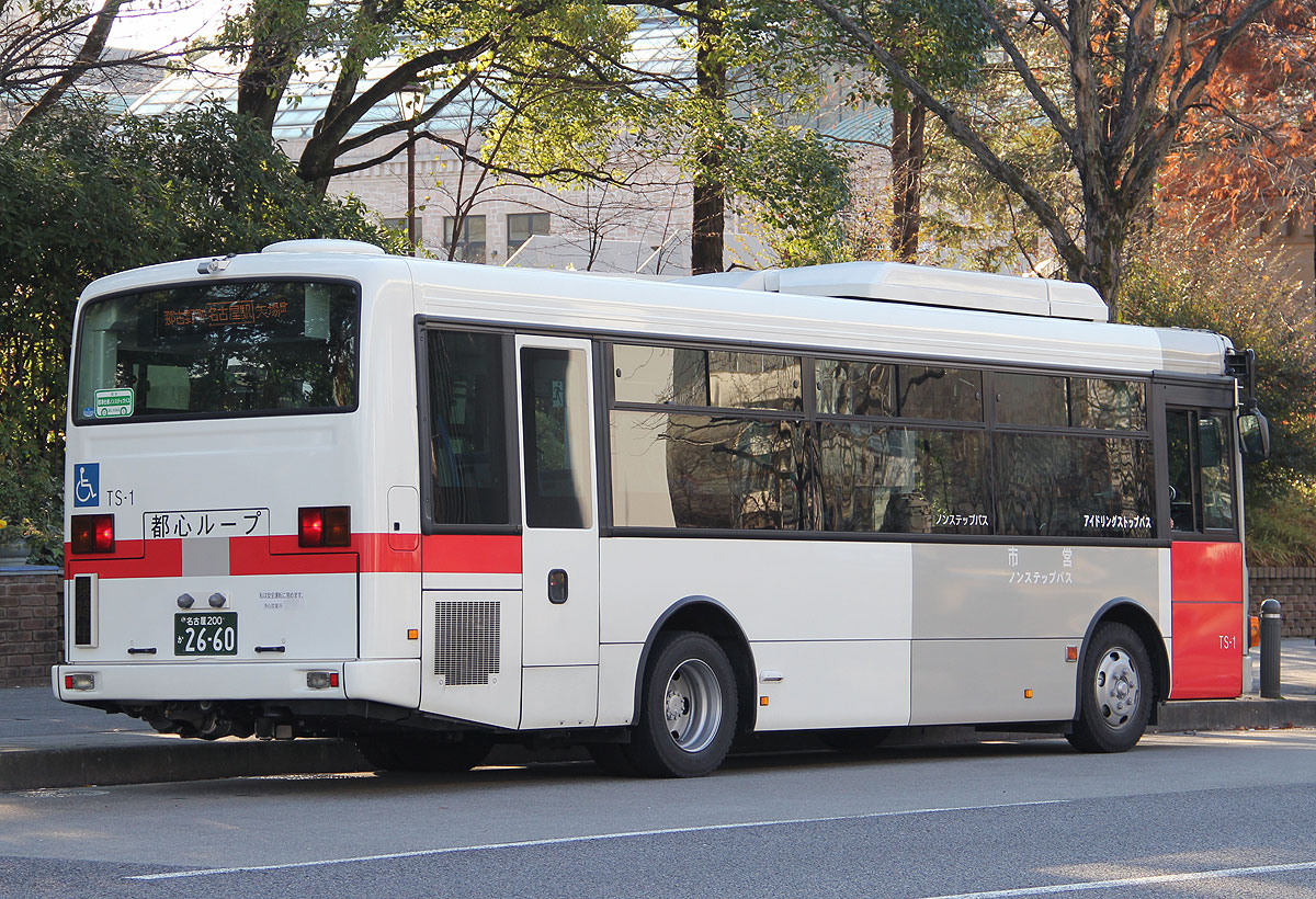 都心ループ系統の大須地区への路線延長に対応のため,平成29年3月に中型ノンステップ車両3両が増車されました.局番はTS9〜TS11です.同時に一般系統用車両[NMS]も11両購入されます.