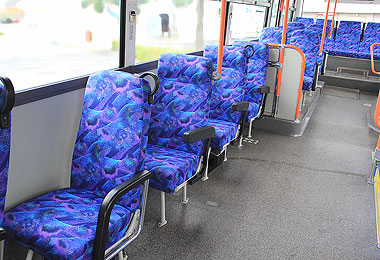 座席は横向きのベンチシートと優先座席が撤去され,それぞれ前向き1人掛座席が設置されています.