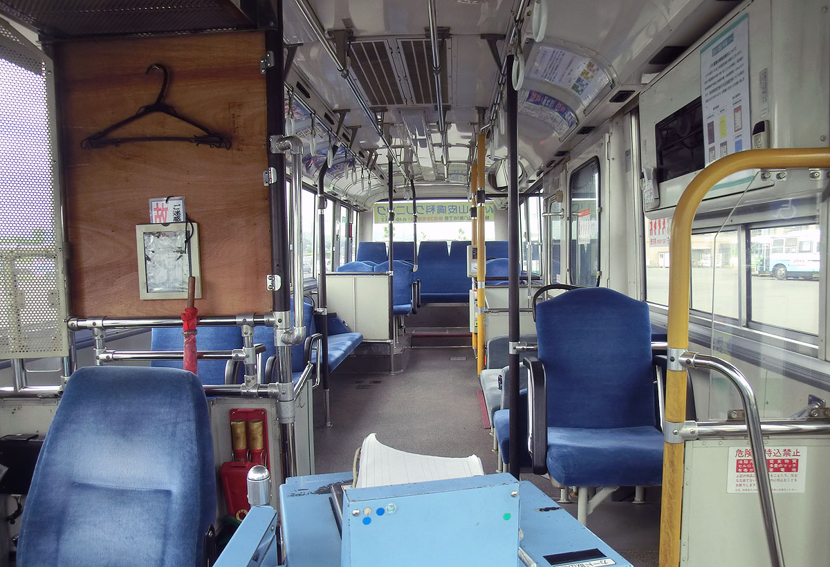車内はカーテンが撤去され,道北バスワンマン機器が装着された以外は,名古屋時代のまま使用されています.