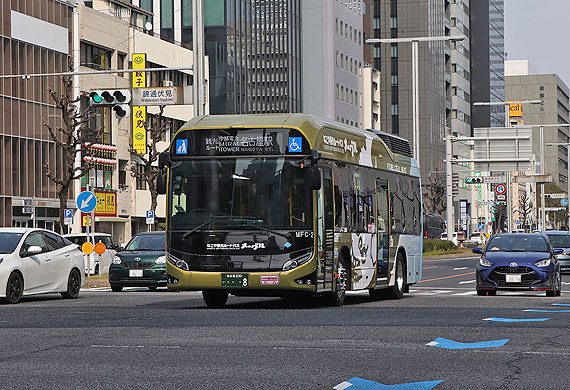 運行は交通局です. 車体に名古屋城本丸御殿などの絵をラッピングした市バス車両3両が用意されました.