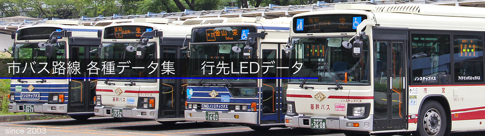 市バス車両に搭載された行先表示器のうち,LED式表示器のコマ内容を調査しています.