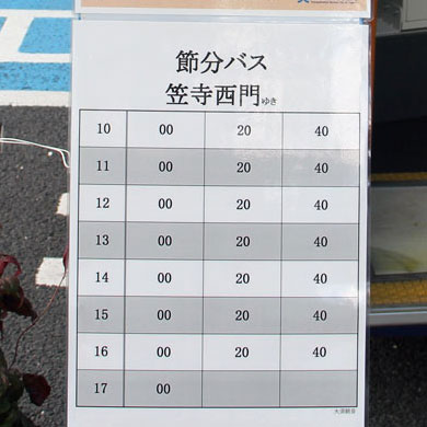 一年に一回,節分の日に運行される臨時急行バスのうち,「大・笠系統」を紹介します.