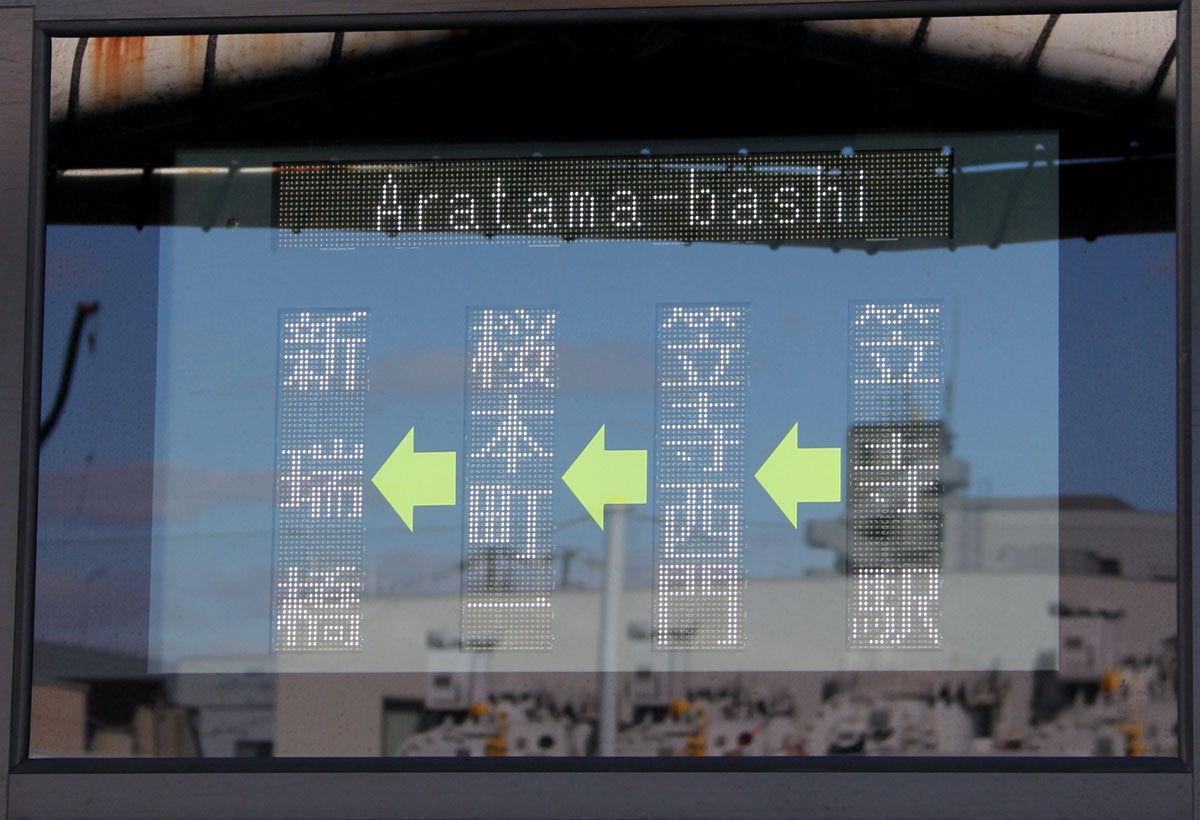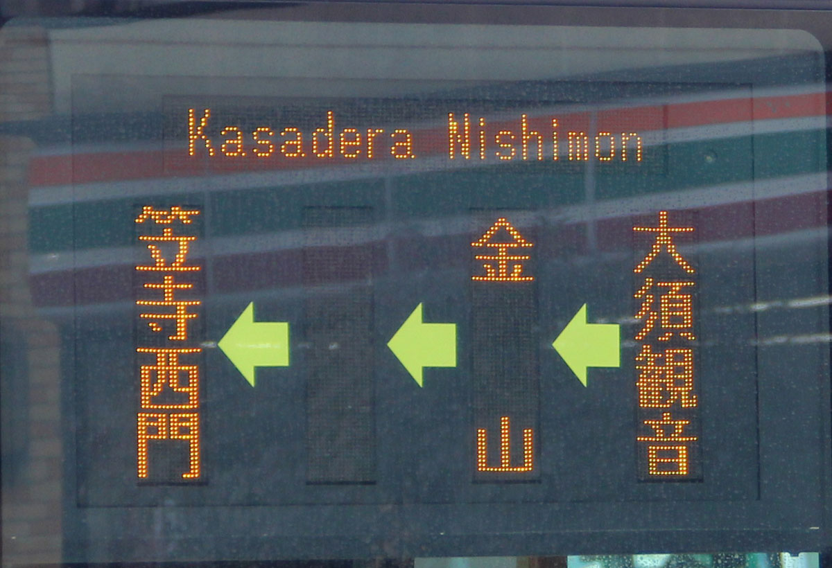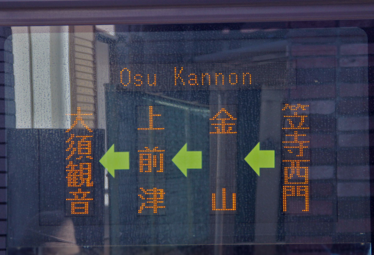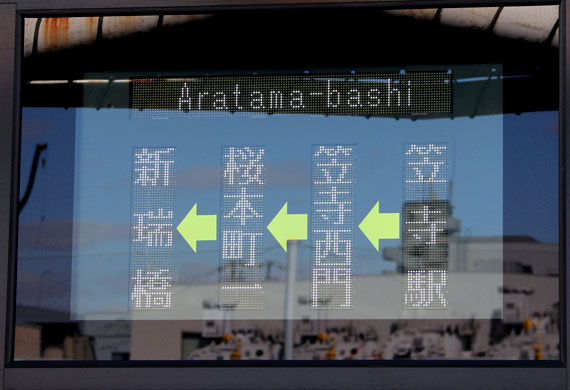▲新・笠系統の側面表示(新瑞橋行き) 更新LED=側面英字入り・急行なし |