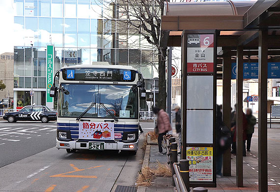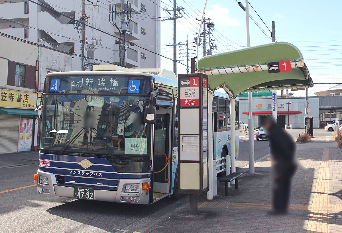 ▲笠寺西門(南行)臨停 停車中の新・笠系統 笠寺駅行 |
