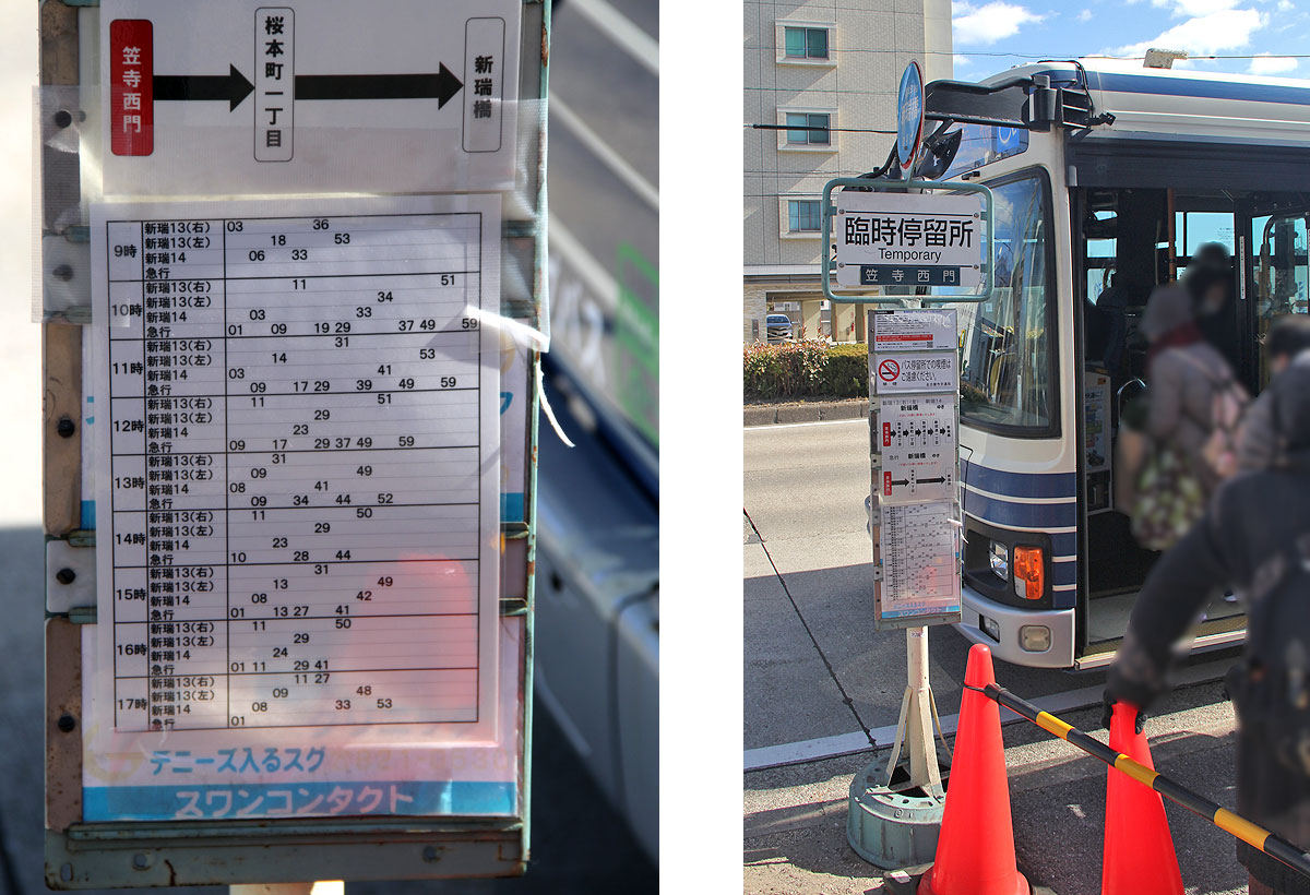 ▲笠寺西門停の復路時刻表 |