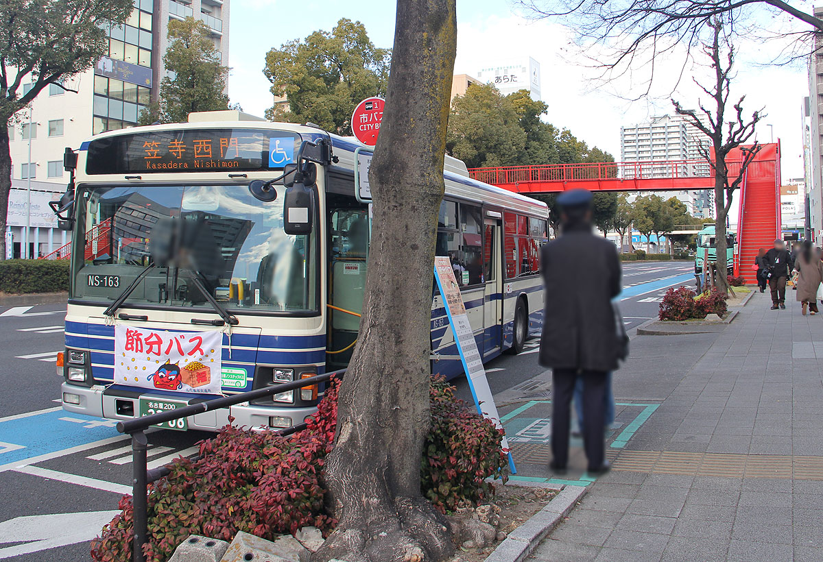 ▲起点の大須観音停(南行) 停車中の大・笠系統 笠寺西門行 楠営業所(NS-163)初参戦 |