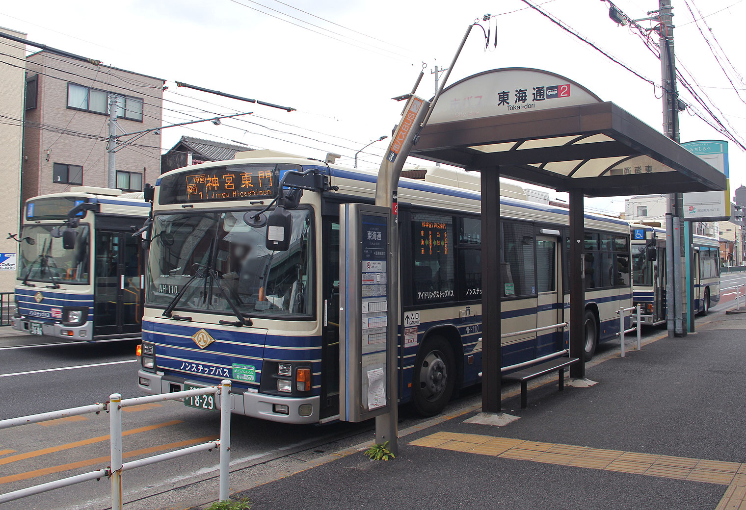特に神宮東門停を発着する幹神宮1,幹神宮2,栄21号系統では利用者も多く,増発運行が行われます.
