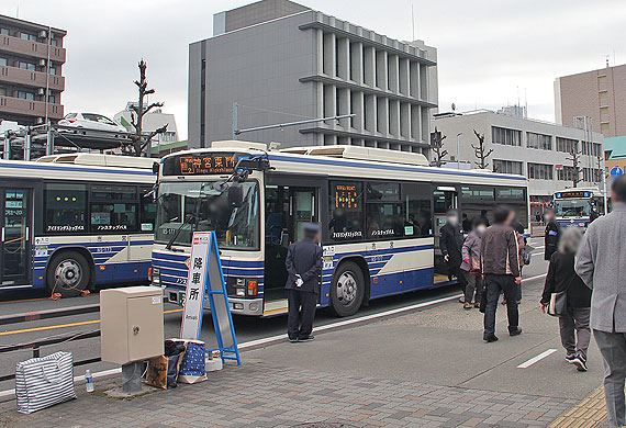 ▲北臨時3番のりばを発車する増強便(権野行) (令和2年正月の様子) |
