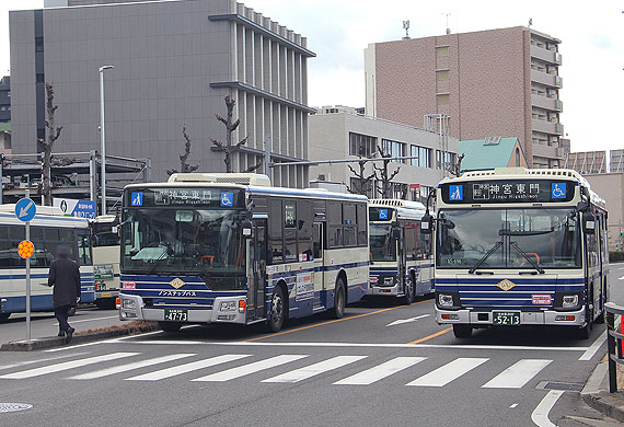 神宮周辺の混雑対応のための交通規制によるバス路線の迂回運行もあり,関連系統では「正月ダイヤ」にて運行されます.