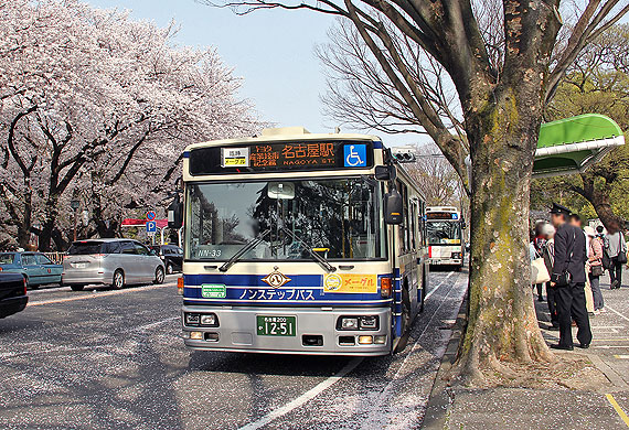 行楽トップシーズン限定の市バス路線として,平成11年(1999年)までは,4月花見週間限定の花見1号系統「花見バス名古屋城コース」,8月「名古屋城夏まつり」期間限定の臨時急行バスが,名古屋駅〜名古屋城間を運行していました. 最終運行日は,平成11年8月3日〜8月15日「名古屋城夏まつり」開催に伴う運行です.