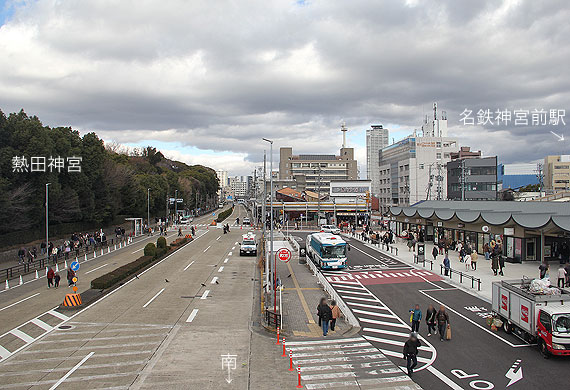 熱田神宮の東側(神宮東門)に位置する名鉄神宮前周辺も参拝客で混雑することから,周辺道路が交通規制されます.