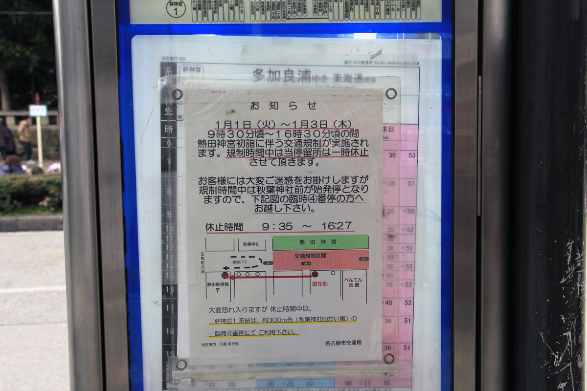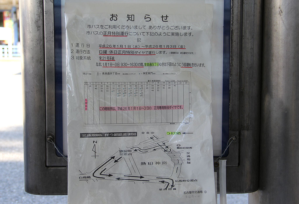 毎年1月の熱田神宮初詣対応による迂回運行の記録集です.