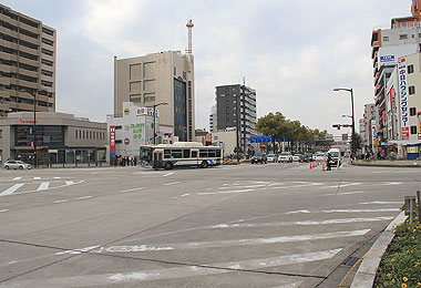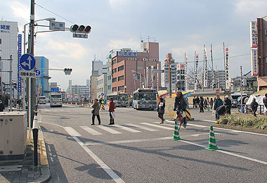 ▲交通規制区間の北端 熱田駅前交差点 |