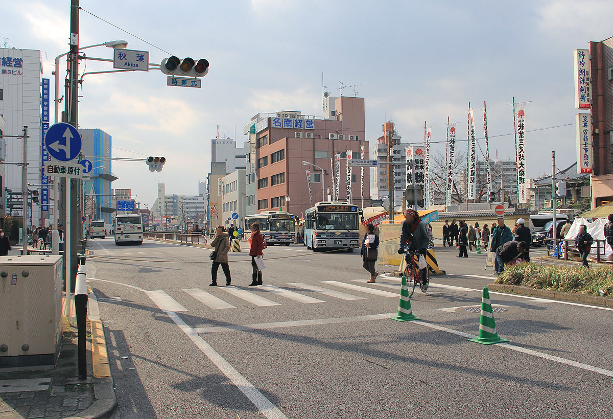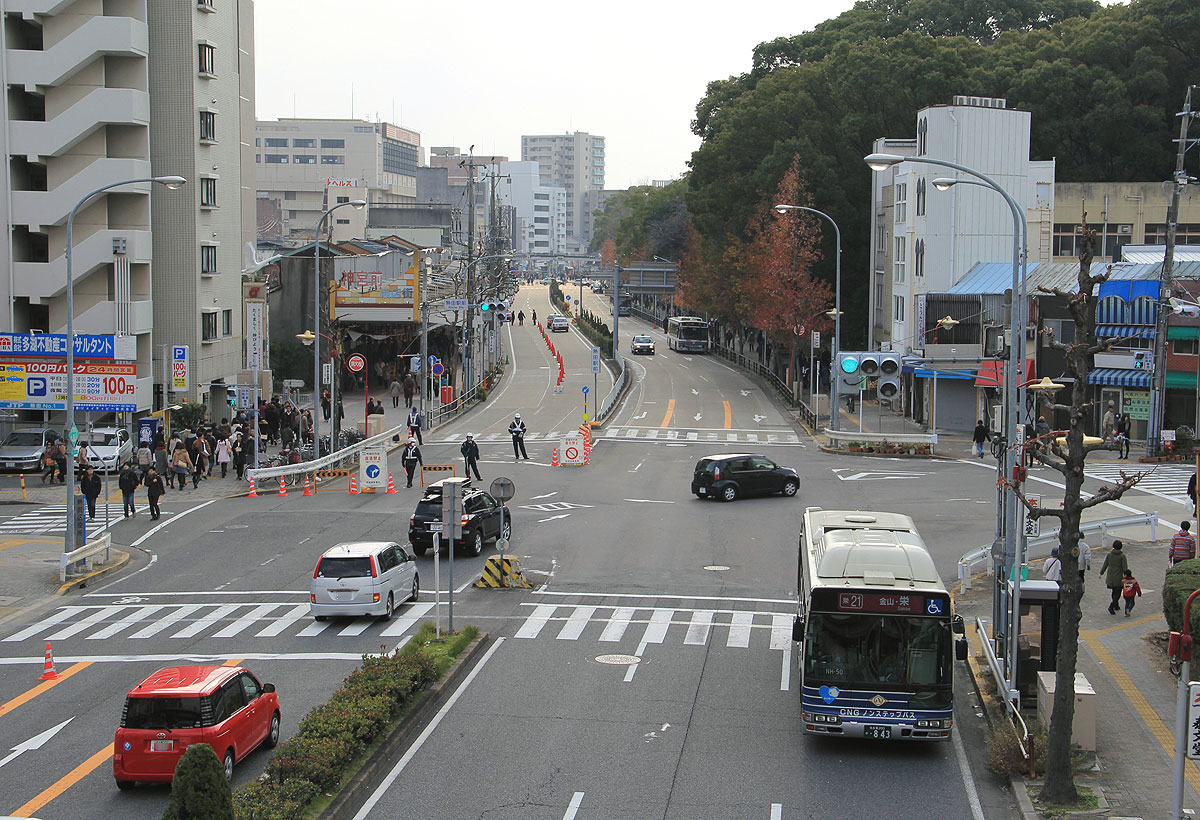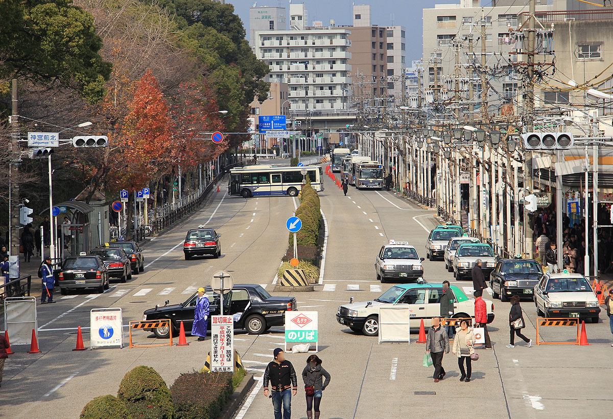 熱田神宮の東側(神宮東門)に位置する名鉄神宮前周辺は参拝客で混雑することから,周辺道路が交通規制されます.