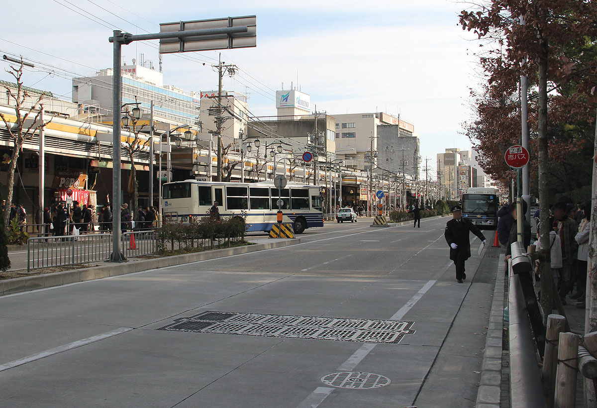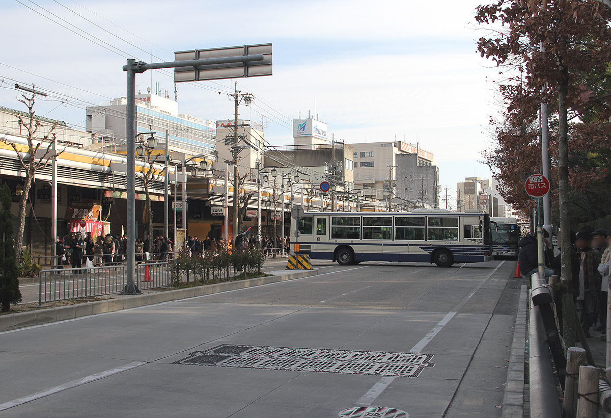 令和3年正月はコロナ禍で人出が少なく,交通規制終了時間が13時〜14時台に前倒しされ,通常のバス停運用に戻りました.