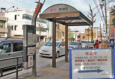 ▲激しい渋滞のため「熱田駅西」停(西行)を休止に