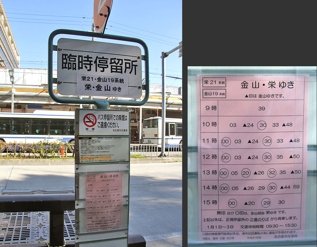 <のりば変更> 栄21号,金山19号,金山25号,幹神宮1号,幹神宮2号, 神宮12号,神宮15号,熱田巡回,南巡回系統 |