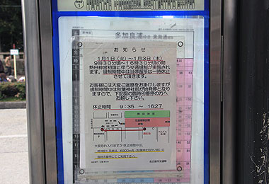 ▲正月のみ登場する臨時停留所標識 |