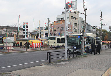 名鉄神宮前駅前にある「神宮東門」停付近が交通規制されるため,南北に臨時停留所が設けられ,正規停留所は休止されます.