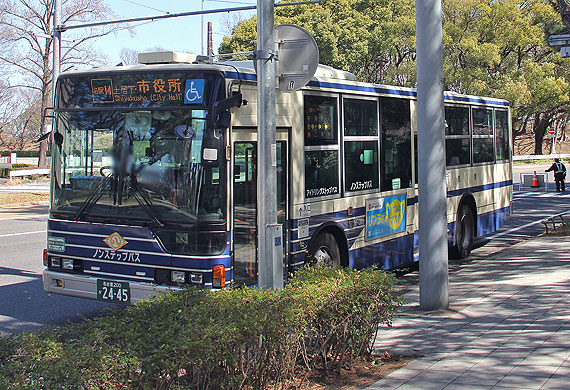▲名鉄基幹バスの側面表示 市役所行き |