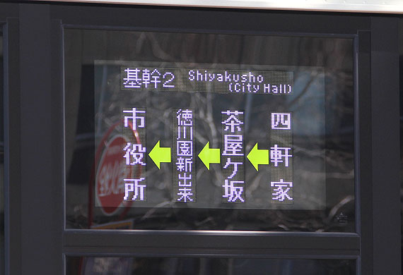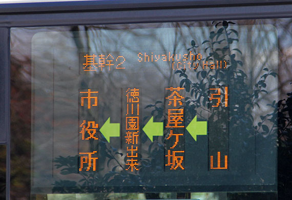 ▲基幹2<復路>市役所行き表示 |