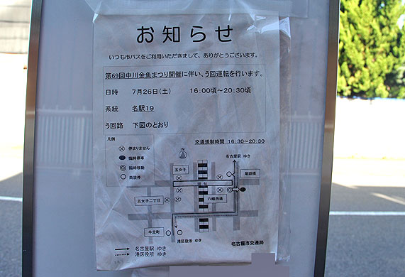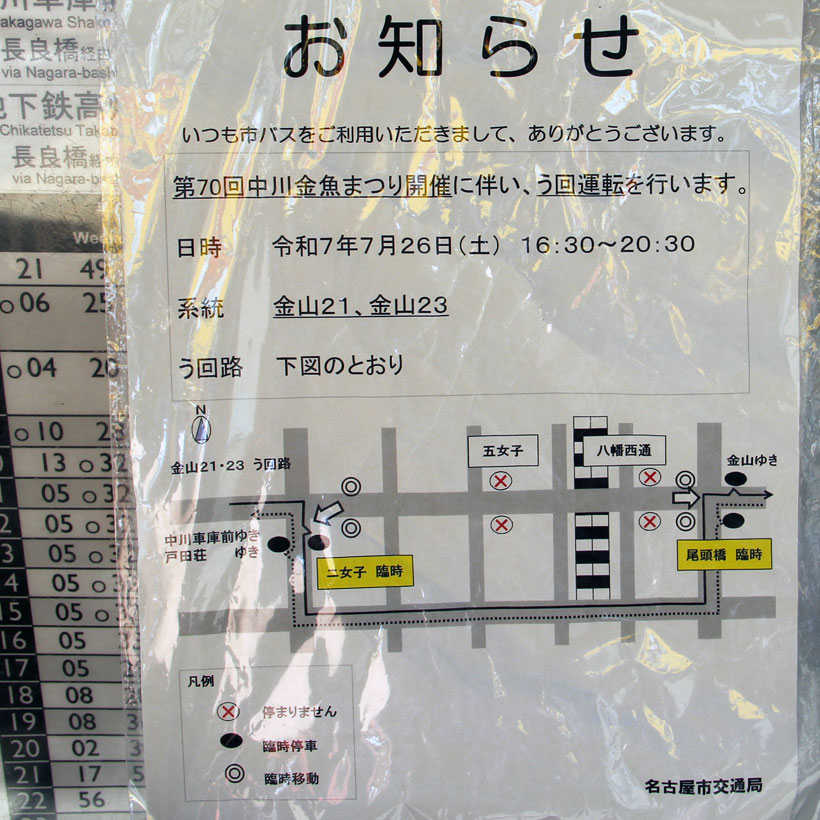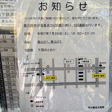 ▲中川巡回系統の迂回告知 この情報はWEBには掲載されない |