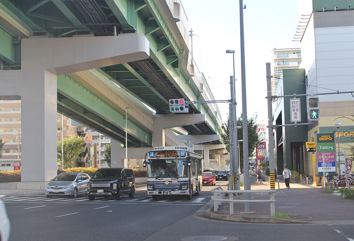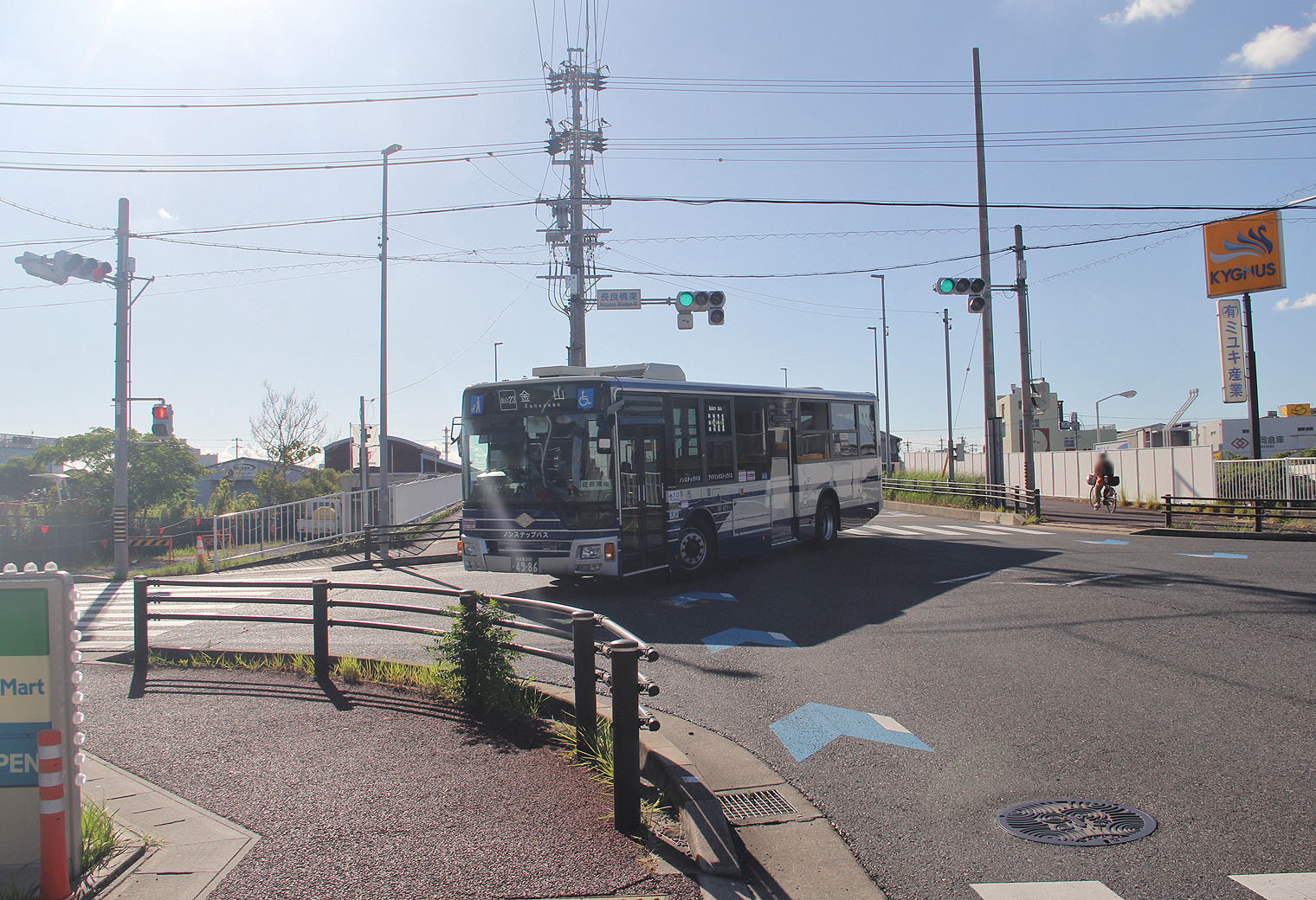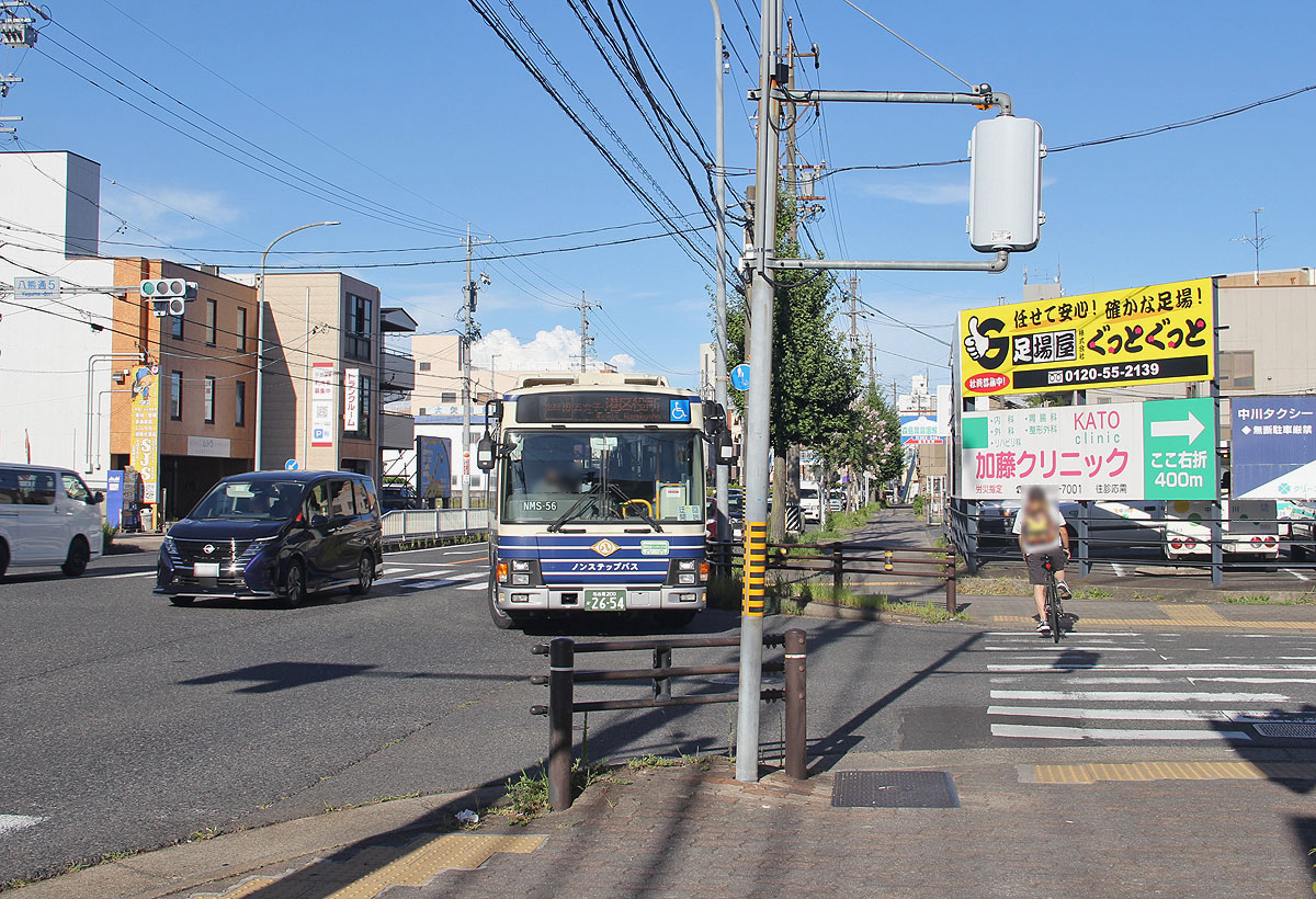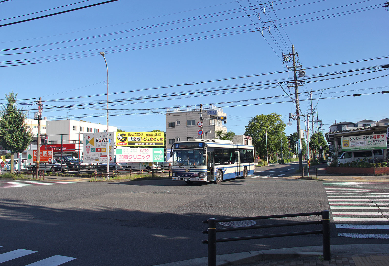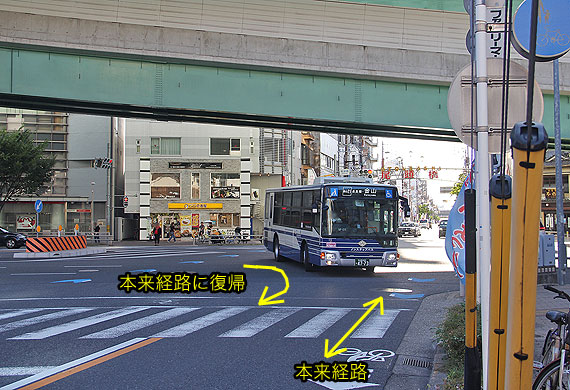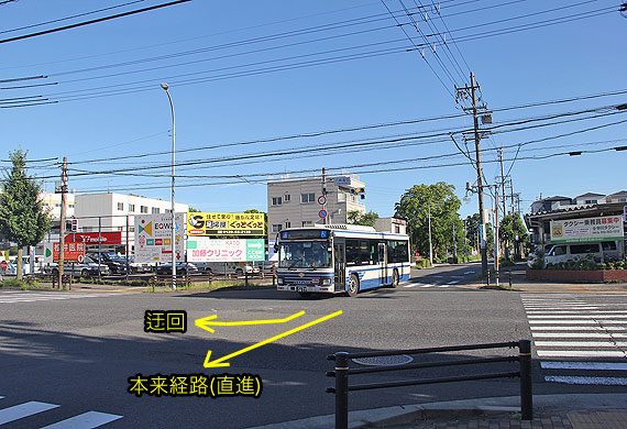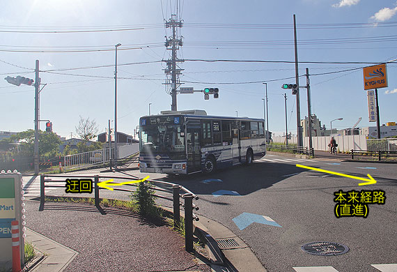 名駅19号系統支線(柳原橋経由)は,五女子方面に進めず,江川線を直進します.