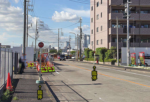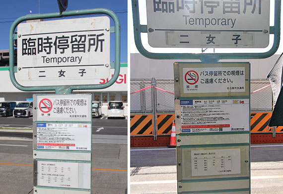 尾頭橋停留所のうち東行停は臨時移設されます.南行停は既設停を流用します.