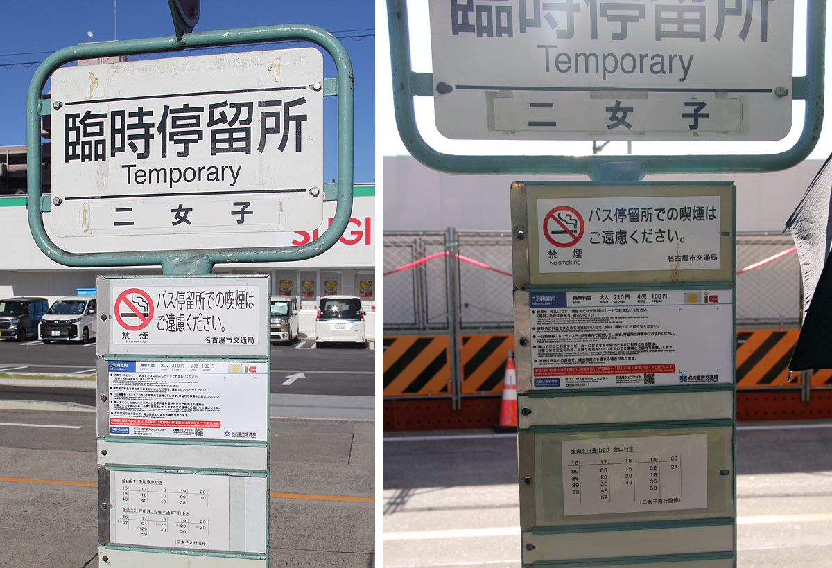 五女子・五女子二丁目・八幡西通・名鉄山王・露橋公園・露橋二丁目 <臨時移設> 尾頭橋・二女子 |