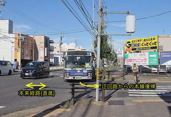 ▲尾頭橋交差点から正規ルートに戻る東行 |