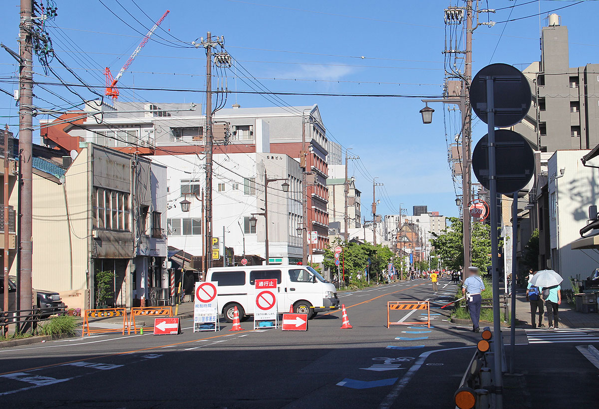 平成30年(2018年)までは,現在よりも交通規制区間が長く,長良橋東交差点から新幹線ガードを超えて,尾頭橋交差点まで通行止めとなっていました.