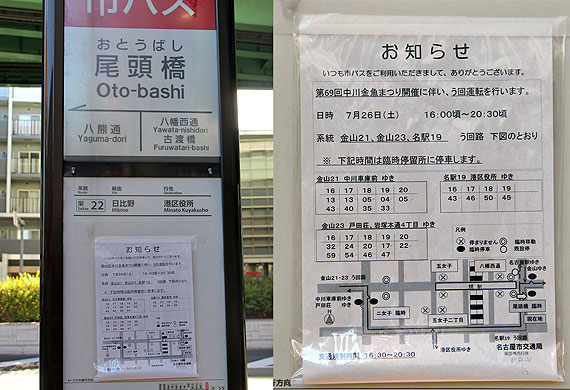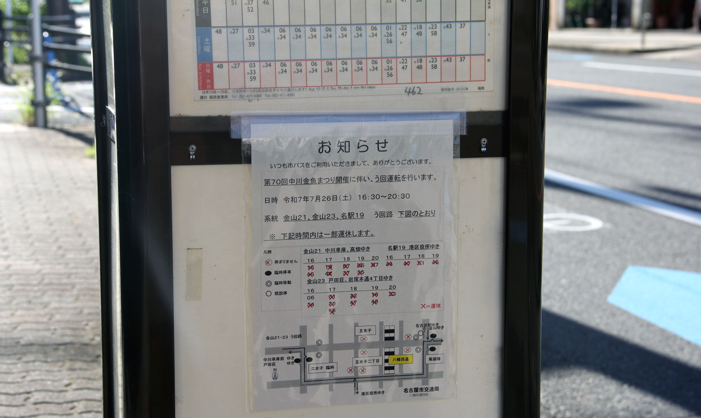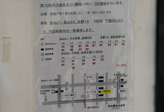 金山21号,金山23号系統は,迂回経路上(八熊通)にある4停留所にも臨時停車していました.