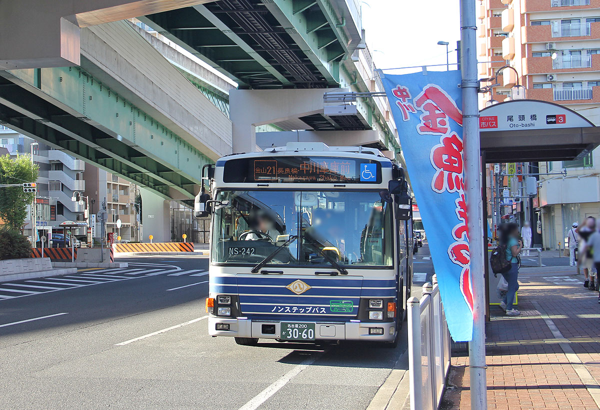 市バス迂回区間は,長良橋東交差点〜尾頭橋交差点間です.