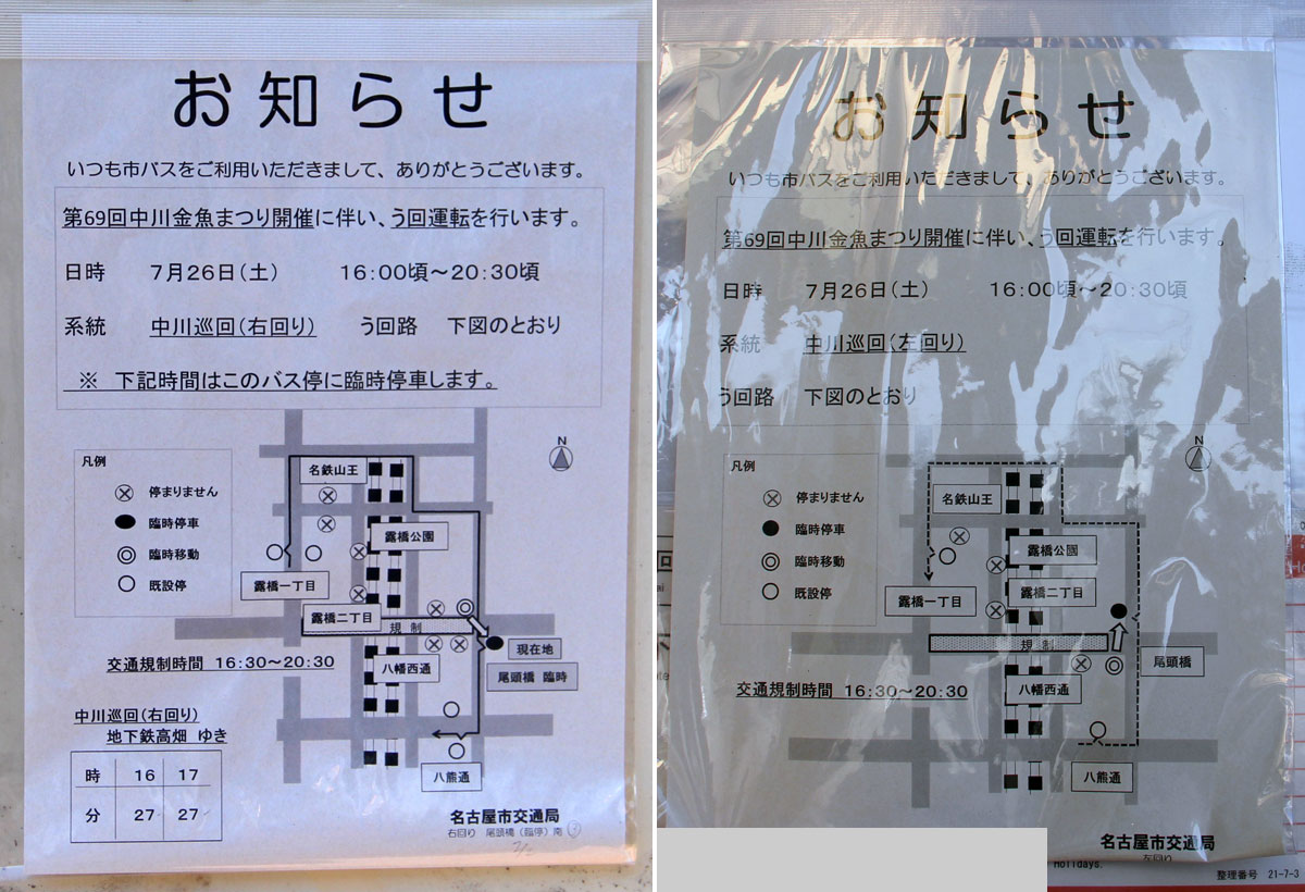 毎年7月下旬に開催される,中川金魚まつり対応による迂回運行の記録集です.