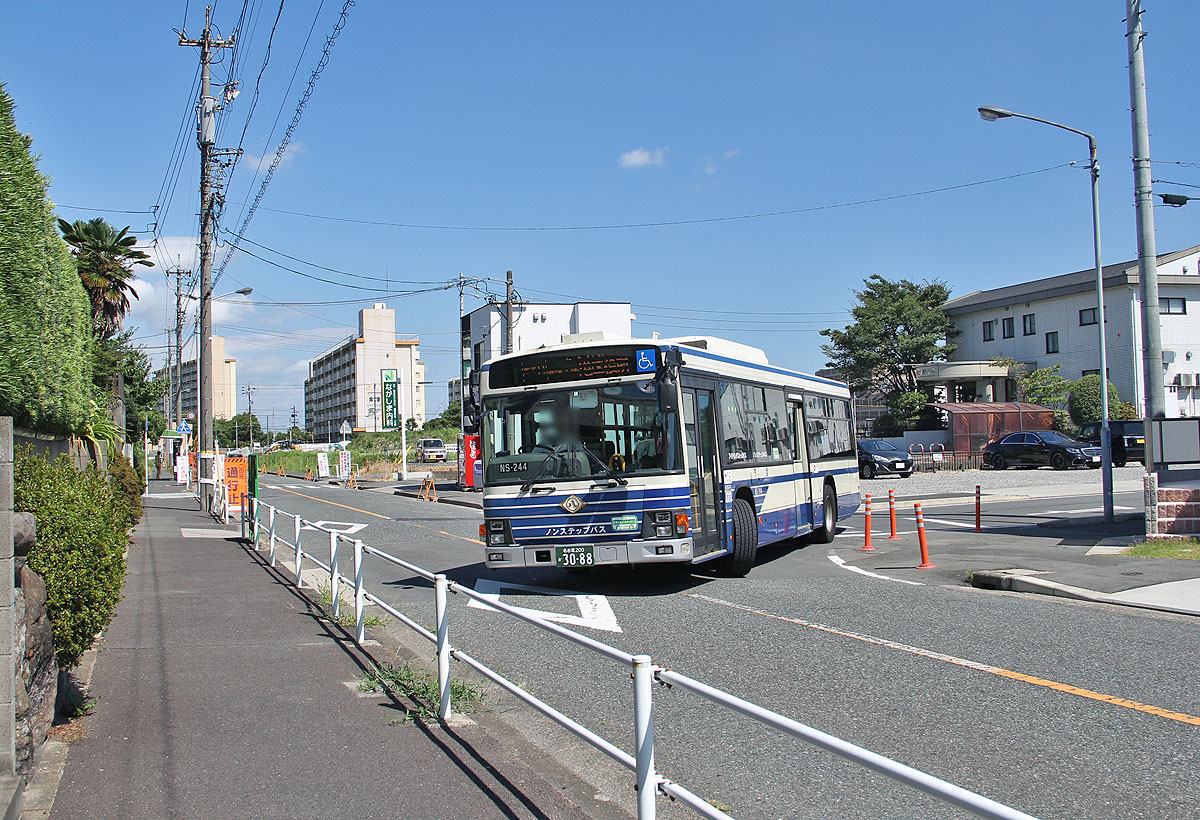 ▲イオン北側道路に迂回する東海12号系統 →9月ダイヤ改正で正式経路に |