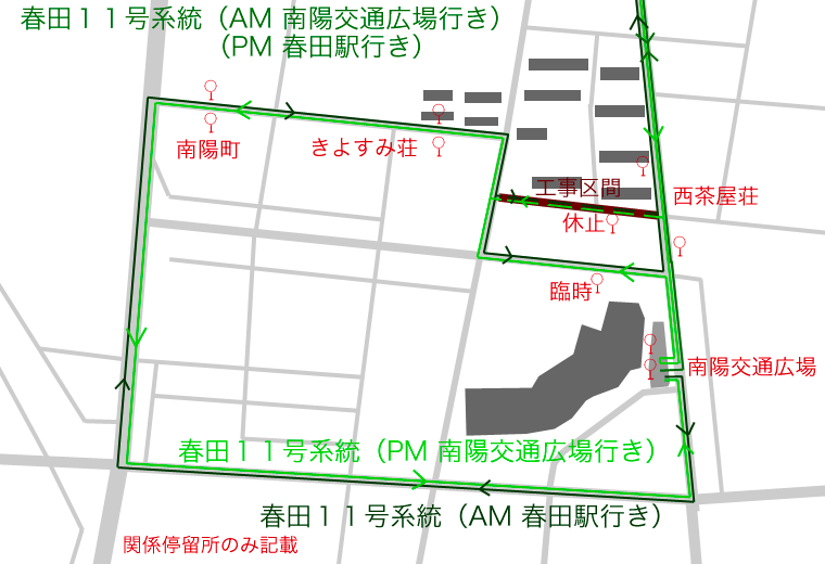 東海11,東海12,春田11号,南陽巡回系統の4系統が迂回運行しています.