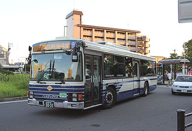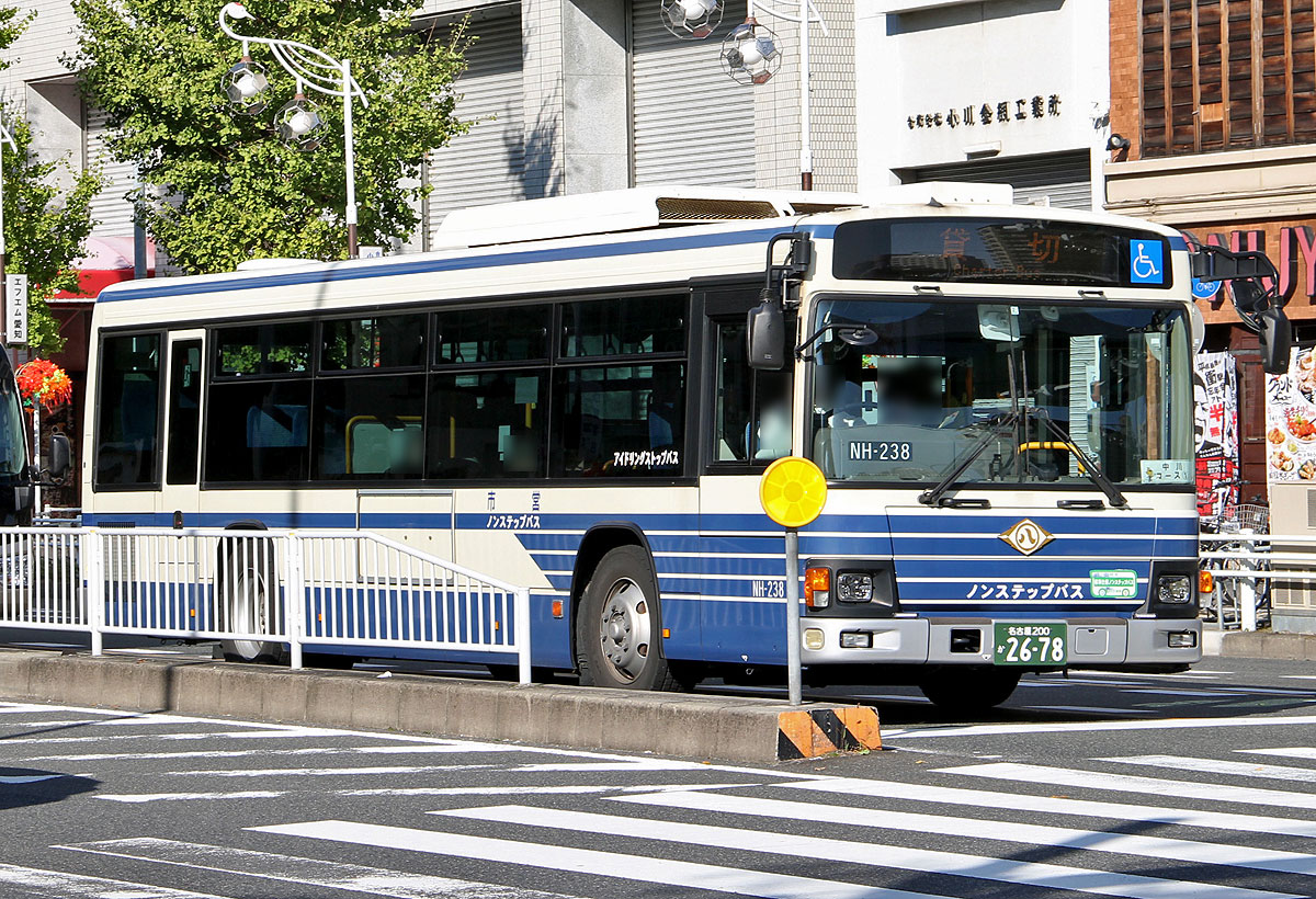 浄心「三英傑バス」と稲西一般車の体制から,平成26年は三英傑バスの鳴尾転出に伴い,稲西営業所の一般車2両(NS-252,NS-253)体制になりました.