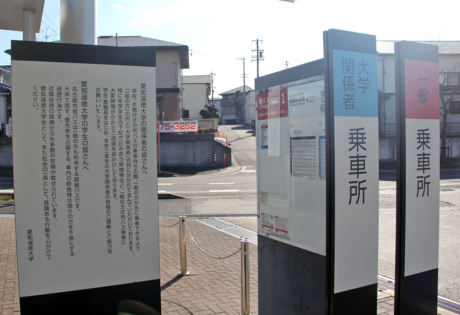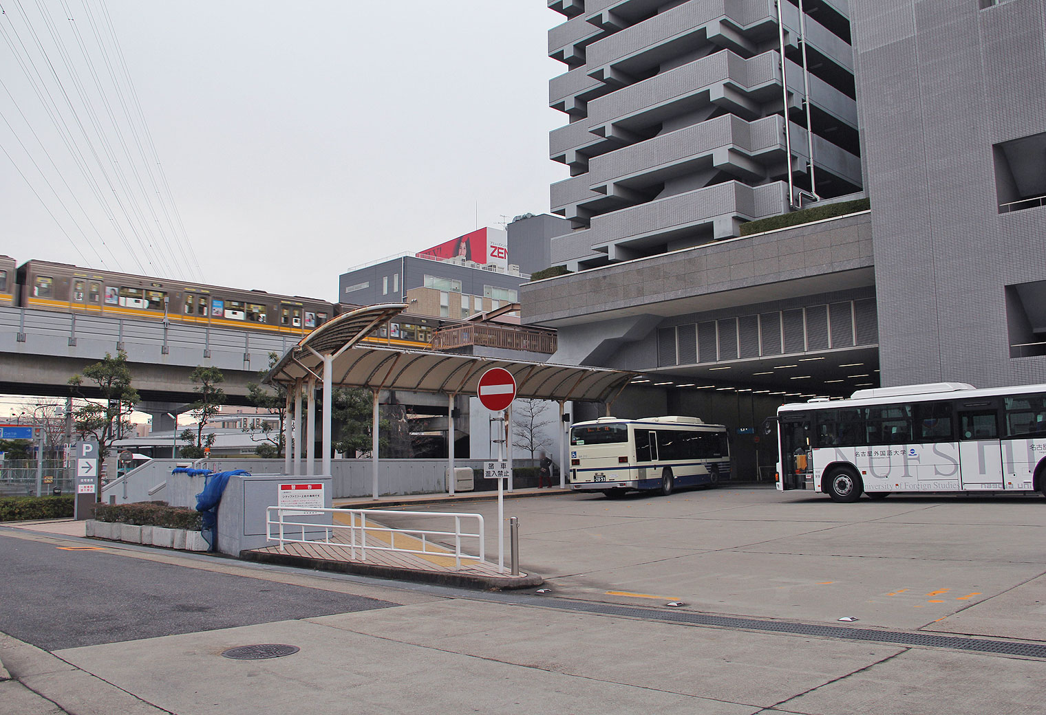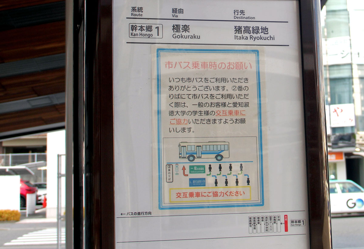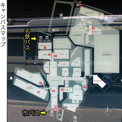 キャンパス南側の市バスのりばとは別に,キャンパス北西にもバスターミナルが設置されており,大学スクールバスと名鉄バスはこちらを発着しています.