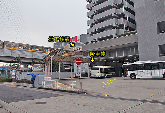 市バス用降車停は駅正面にあります.
