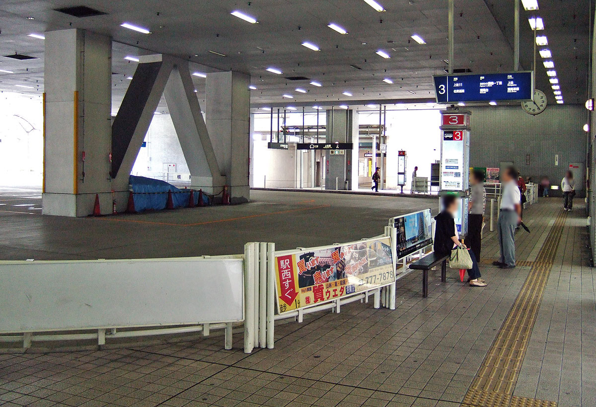 発着本数,利用者数ともに多く,駐車スペースや乗降場(行列)スペースの大きいバスターミナルです.