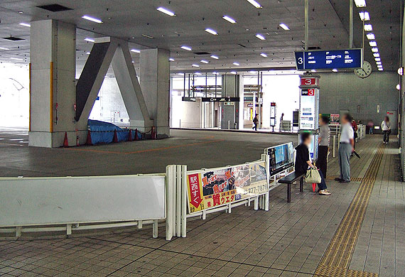 ▲駅正面の降車停と3番のりば |