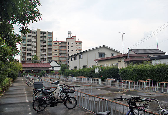 茶屋ヶ坂〜猪高車庫間は丘陵地の住宅街です.