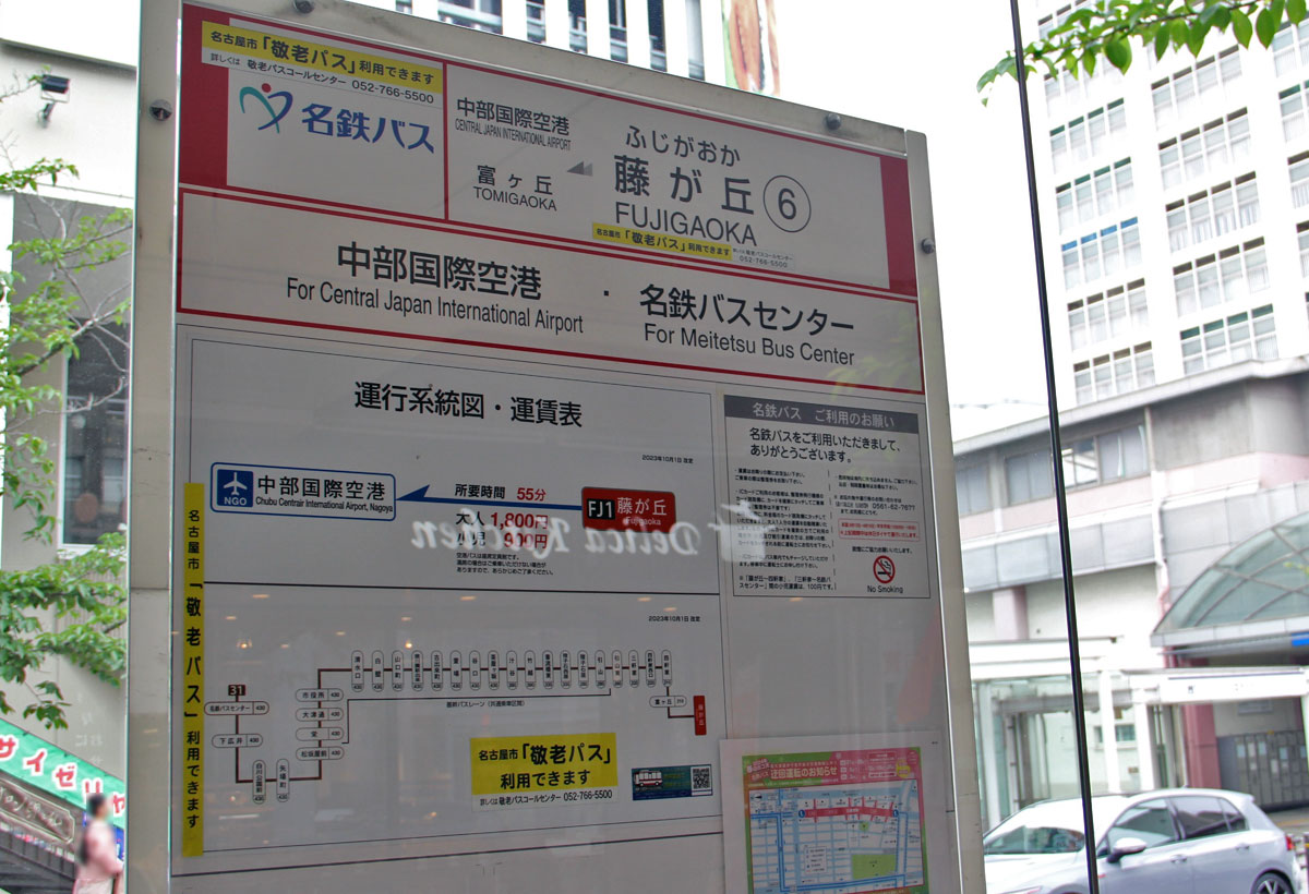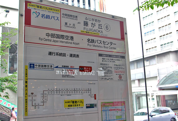 バスターミナルを発車したバスは,右左折を繰り返し,大津通(南北道路)沿いに設けられた栄路上停(市バス23番のりば)で名鉄基幹バスと合流します.
