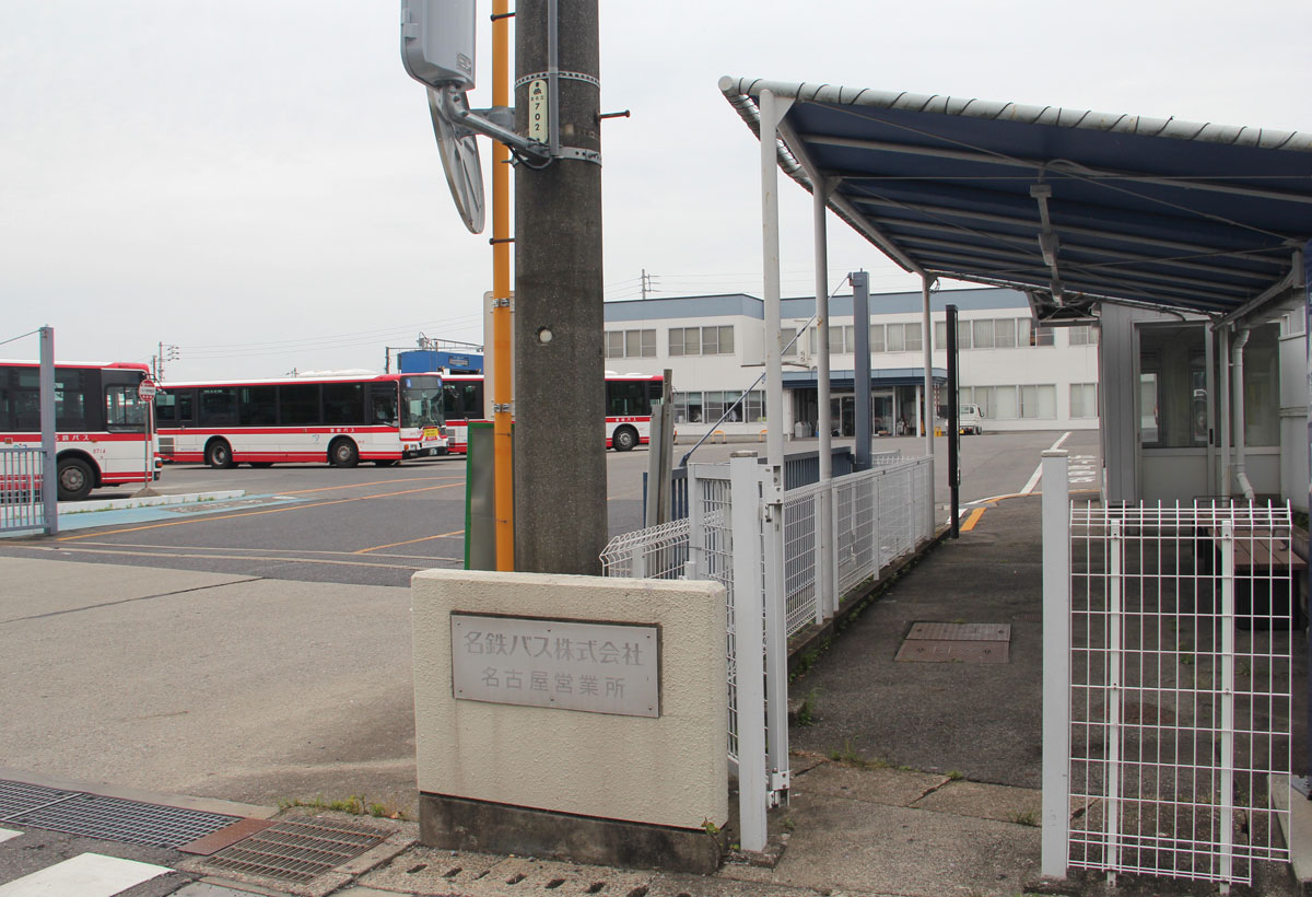 ▲下広井バス停前の名鉄バス(旧)名古屋中央営業所 |
