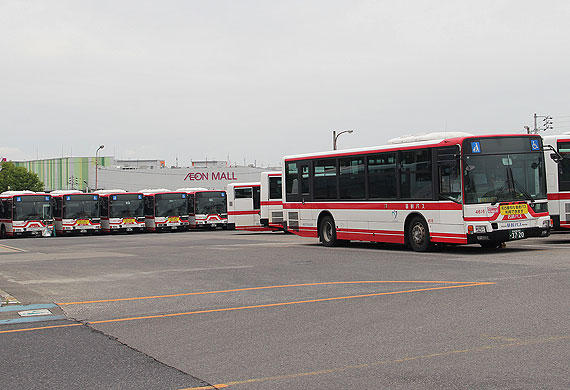 市バスは大森営業所への出入庫便が四軒家まで,名鉄バスは三軒家行き若くはその先の郊外行きの路線が続いています.